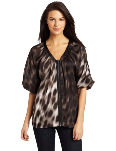 Kenneth Cole Women's Petite Blurred Animal Print Top, Black/Pearl, Petite/Small